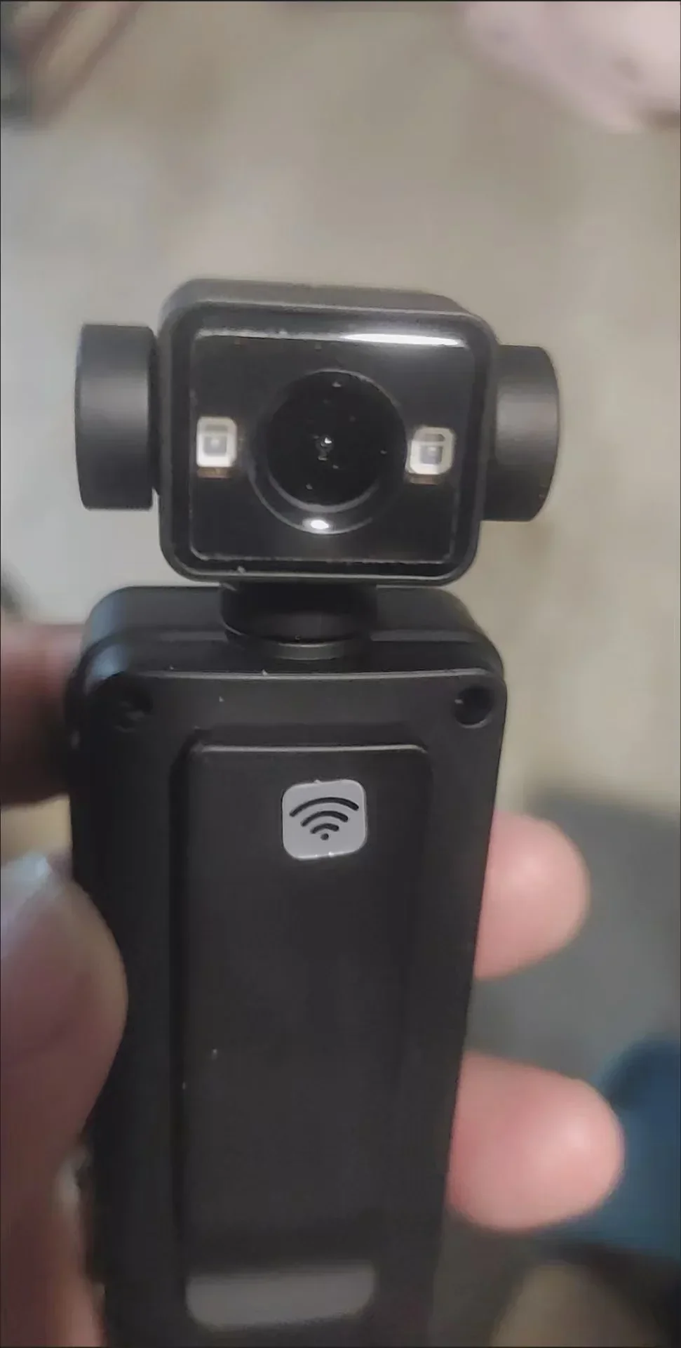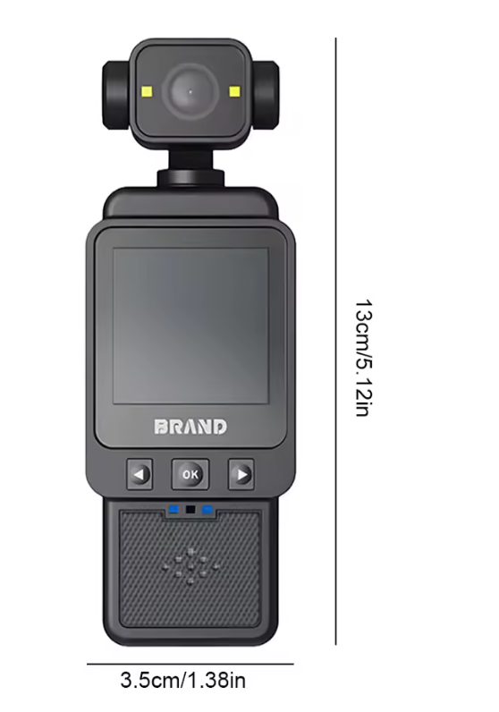 Es una mini cámara portátil multifuncional con WiFi, diseñada para grabar video y audio en alta calidad. Tiene pantalla integrada, lente externo y botones físicos para control rápido.📹.