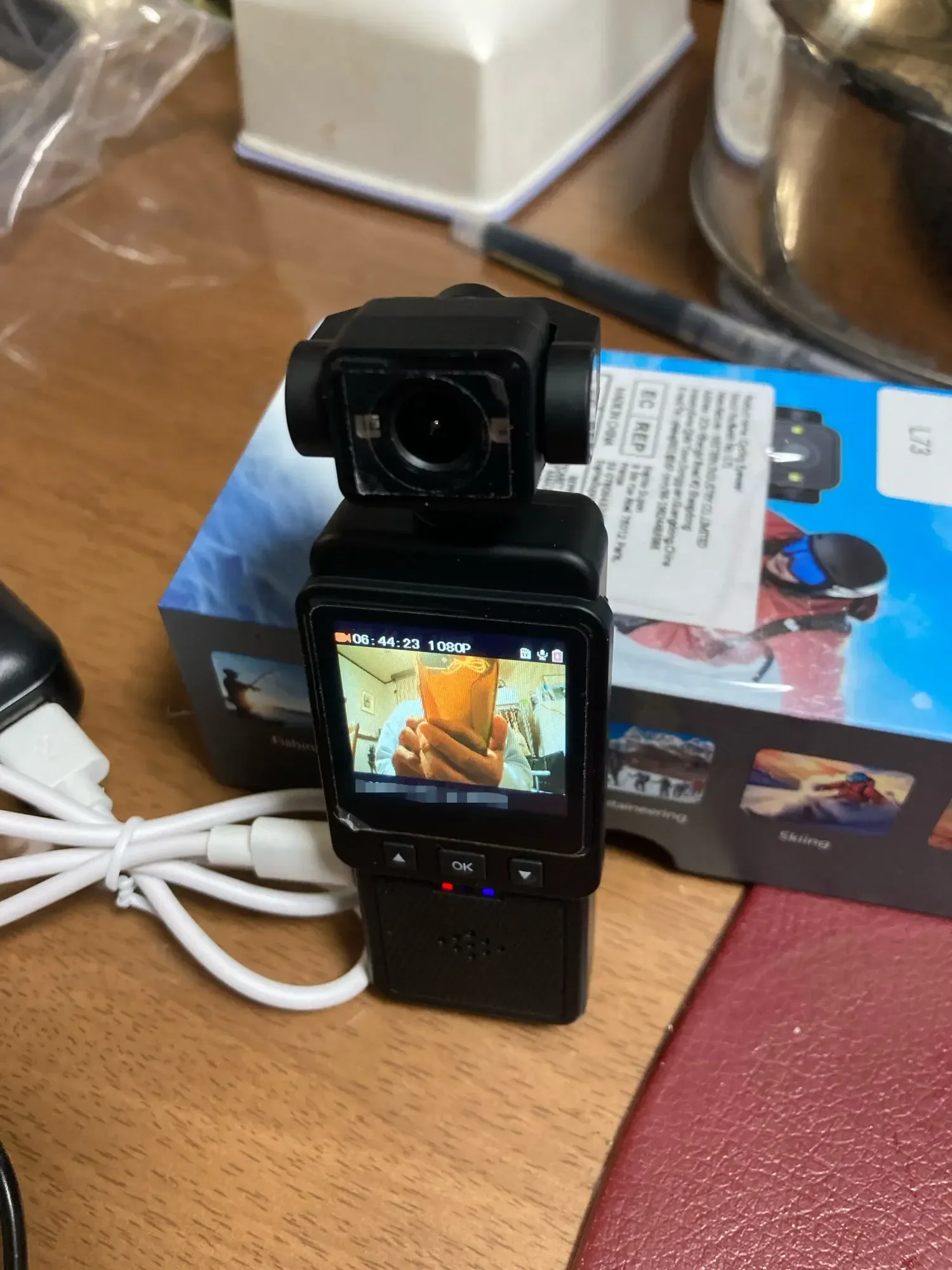 Lo juro, esta pequeña cámara realmente me sorprendió. Graba en 4K, la calidad de video es extremadamente nítida e incluso incluye un micrófono externo que captura el audio de manera excelente. Es pequeño, cabe en tu bolsillo y puedes girarlo hasta 180 grados. ° .