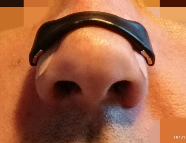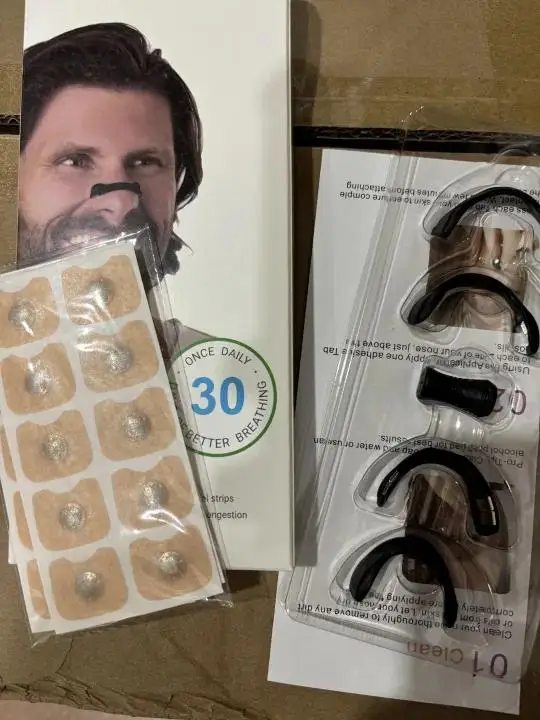 Esto ha marcado una gran diferencia para mi esposo, quien tiene el tabique desviado y durante años solo ha podido dormir de un lado de la cara (de lo contrario, no puede respirar). Se siente mucho más descansado y no se duerme tan a menudo; solo asegúrate de conseguir las almohadillas adhesivas de entrada fabricadas por Intake, de lo contrario no funcionará correctamente..